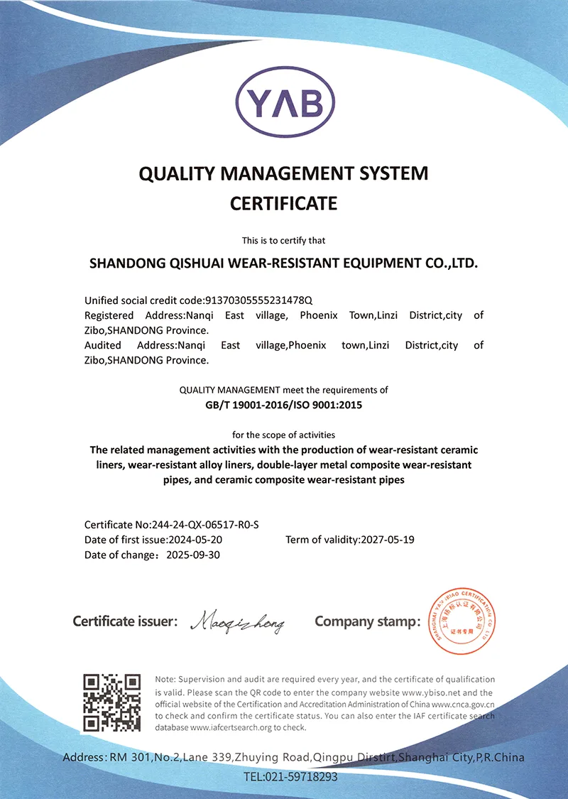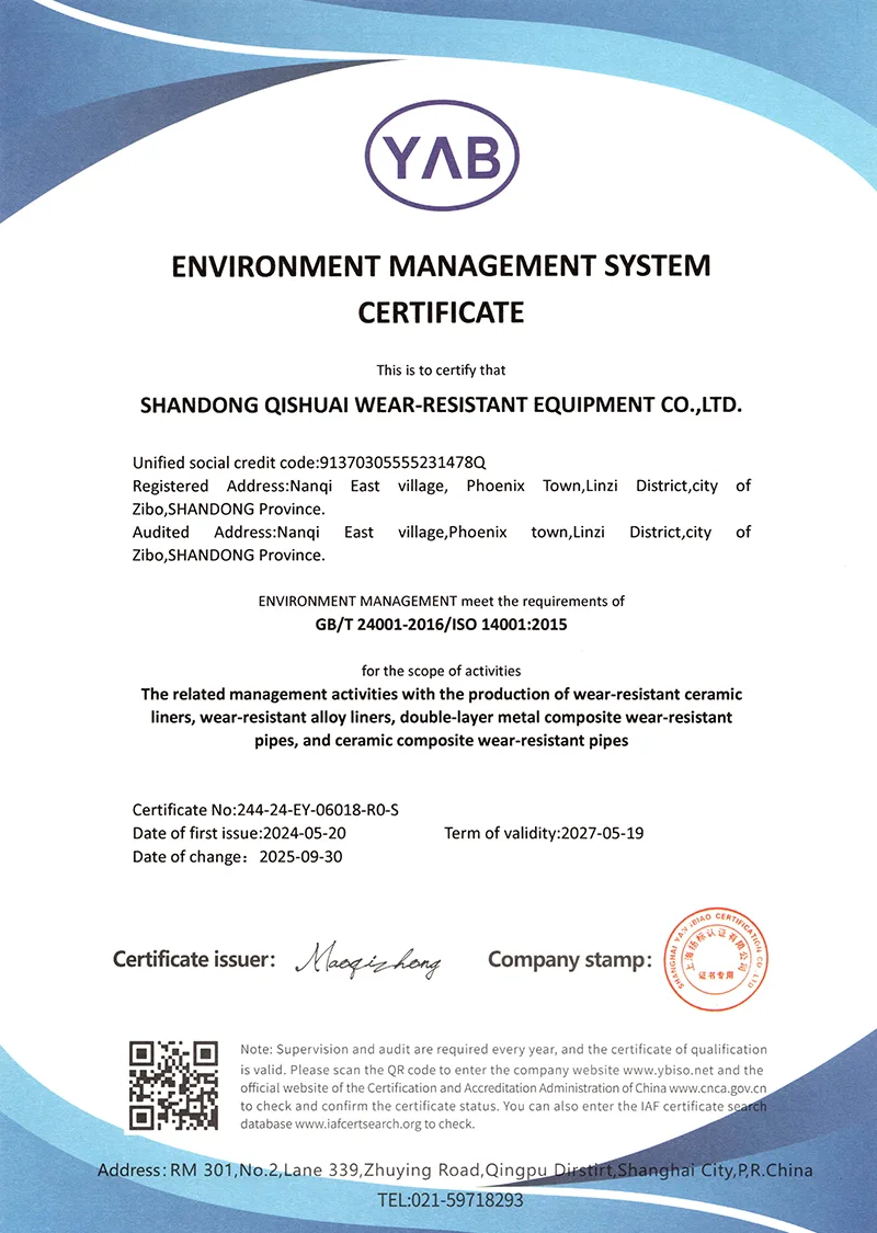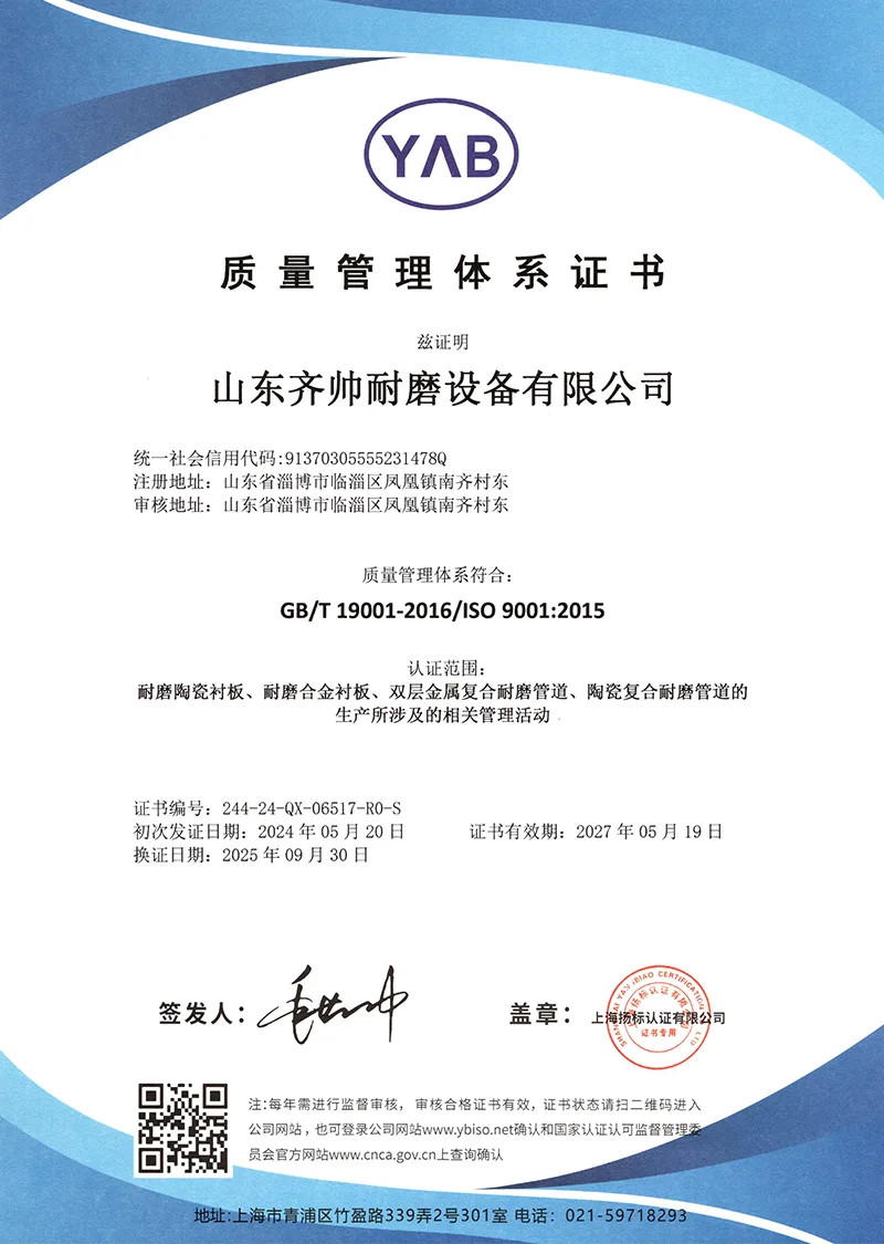 또한, 우리는 끊임없이 자신의 수준을 향상시키고 적극적으로 혁신을 수행합니다. 이 회사는 지적 재산권을 보유한 일련의 내마모성 재료 및 기술을 개발했으며 사용자로부터 좋은 평가를 받았으며 풍부한 수익도 얻었습니다. 우리는 항상 높은 내마모성과 긴 서비스 수명이라는 설계 개념을 고수합니다. 우리는 먼저 크롬 카바이드 합금 및 고밀도 알루미나 세라믹과 같은 고성능 재료를 선택합니다. 설계 원칙: 작업 조건 일치, 고성능, 안전성 및 신뢰성. 크루프가 해결할 수 없는 세계적 문제가 있다면, 치슈아이로 오세요!