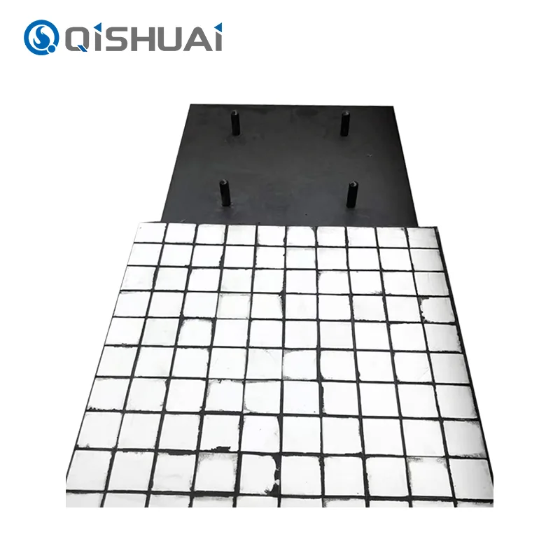 열경화를 통해 세라믹, 고무, 철판이 촘촘하게 접착되어 견고한 일체형 구조를 형성합니다. 각 세라믹 타일은 바닥 철판을 관통하는 관통 볼트가 특징이며 단단히 용접되어 사용 중에 세라믹이 떨어지는 일이 발생하지 않습니다.