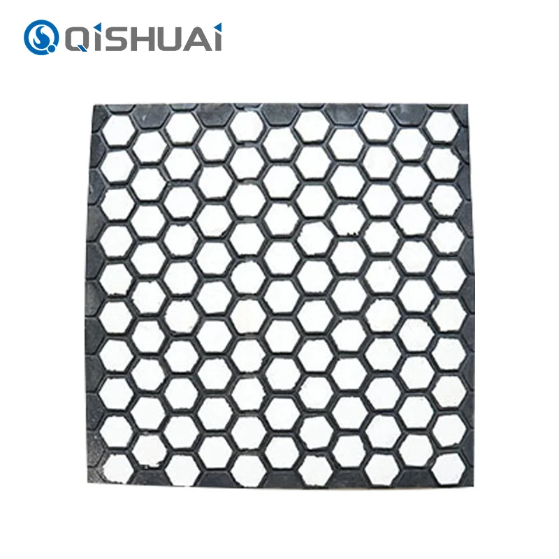 구조물을 제작하는 과정에서 세라믹의 표면은 표면을 변화시키는 처리를 받습니다. 이 처리는 표면 특징과 층과의 연결을 형성하는 표면의 용량을 증가시킵니다. 그런 다음 세라믹과 고무 사이에 강력한 결합을 생성하기 위해 우수한 접착 특성과 노화 방지 기능을 갖춘 고성능 접착제를 선택합니다. 특정 온도 및 압력 조건에서 가황과 같은 공정을 통해 접착제는 세라믹 및 고무와 완전히 통합됩니다. 이는 화학적 결합과 물리적 얽힘을 생성하여 세라믹 타일과 고무층 사이의 긴밀한 결합을 달성합니다. 이는 복합 마모 세라믹 고무 플레이트의 전반적인 성능과 신뢰성을 보장합니다. 강한 충격과 진동에도 세라믹 타일과 고무층이 단단히 결합되어 내마모성과 내충격성을 함께 제공합니다.